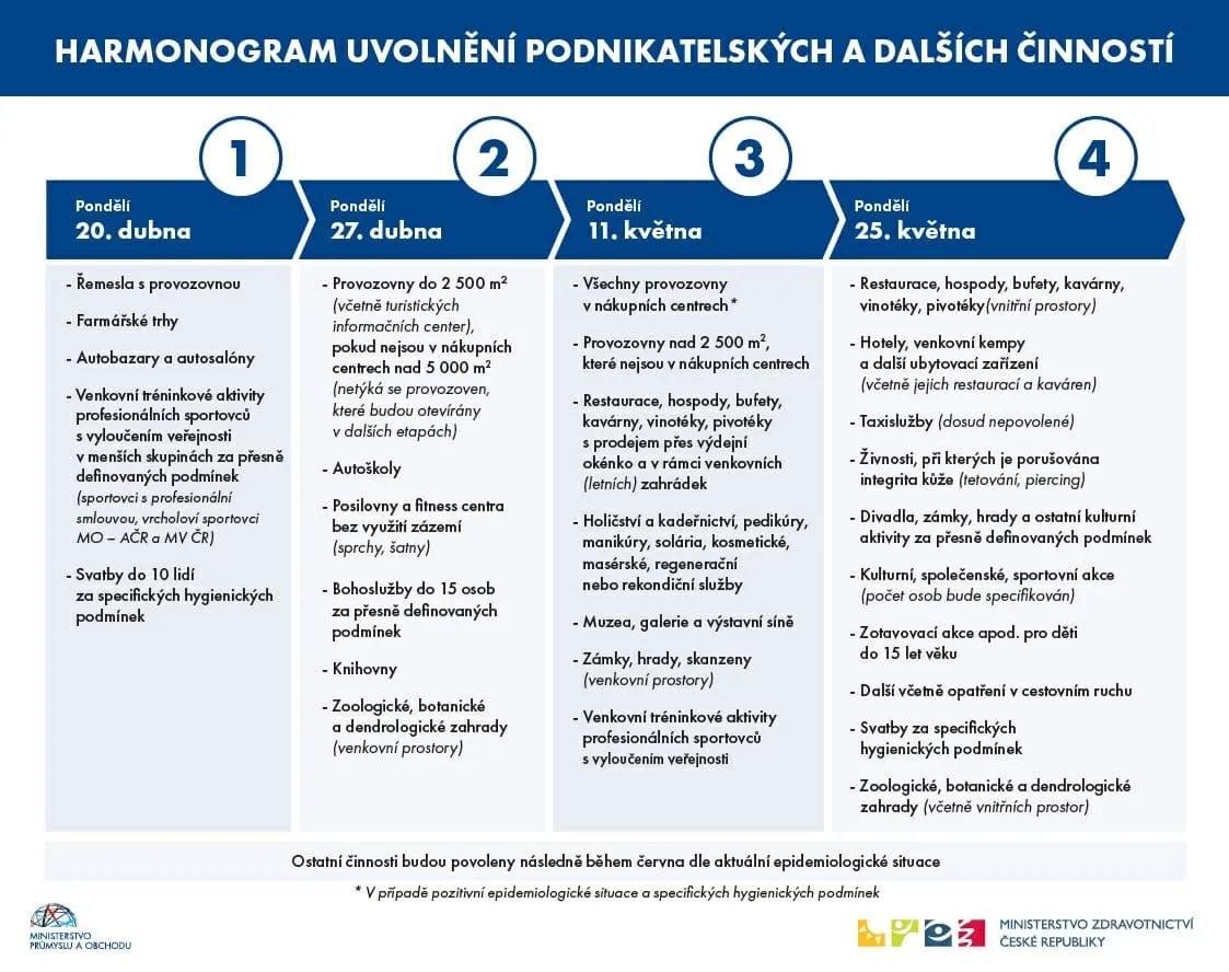 Nový „jízdní řád“ pro otevírání obchodů a služeb vypadá následovně: