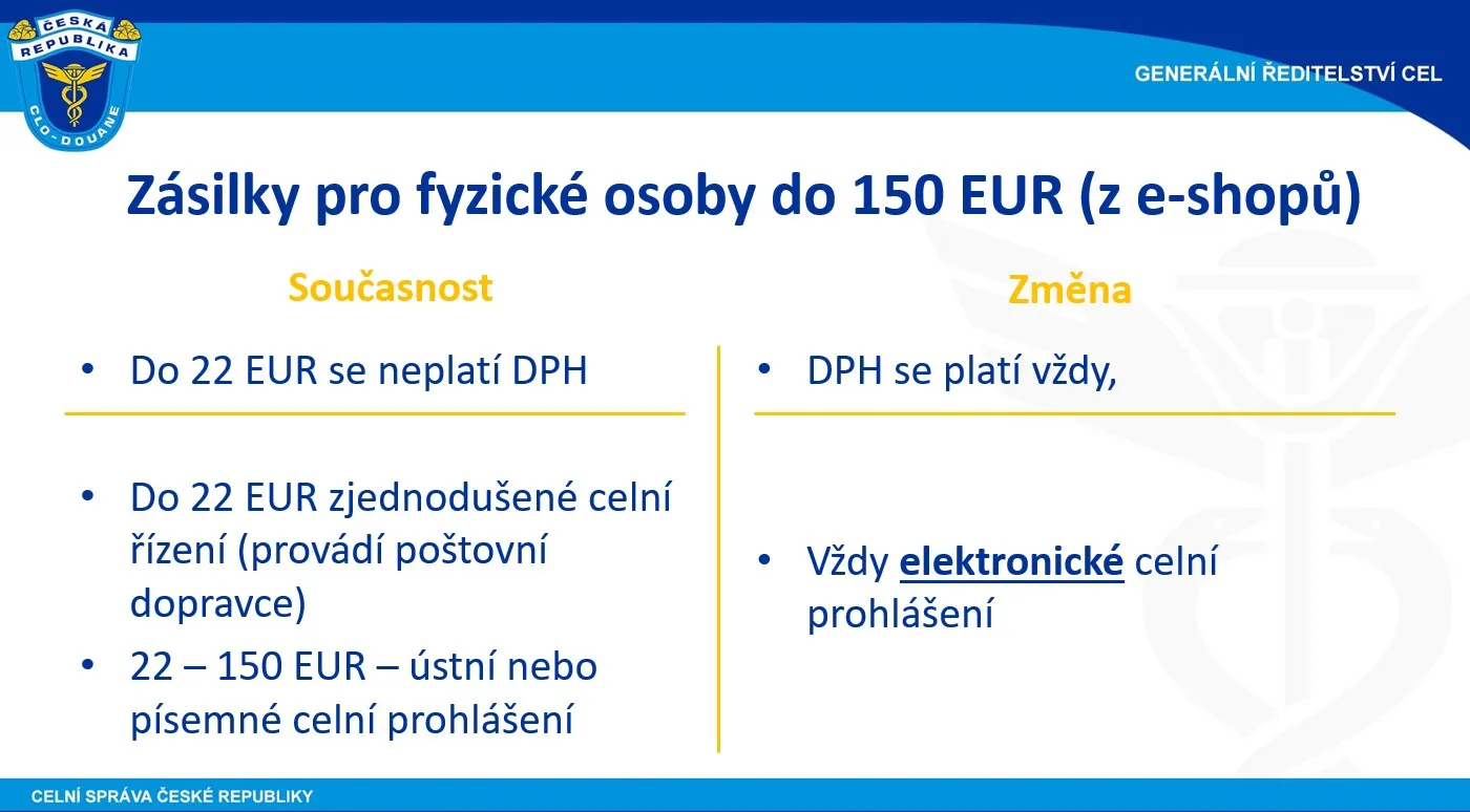 Kromě DPH přijde od července ještě další novinka: Je potřeba podat elektronické celní prohlášení i u zásilek do 150 eur, přestože ve výsledku se z nich clo platit nebude (hranice 150 eur pro osvobození od cla zůstává stejná jako doteď).