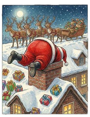 Do lidských obydlí tradičně Santa vstupuje komínem. Protože ale komín dávno není samozřejmost a děti se ptají, jak to tedy Santa dělá, zrodil se nový byznys: kouzelný klíč pro Santu, který se krvavě zaplatí a pak věší zvenku na kliku. A nikdo jiný než Santa si s ním odemknout nedokáže. Zaplaťpámbu, tohle se snad s Ježíškem stát nemůže.