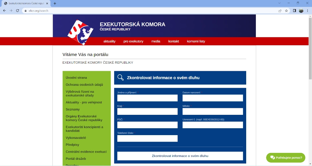 „Na stránce ekcr.org/search se po zadání osobních údajů objeví informace o smyšleném dluhu a smyšlené exekuci. Bez ohledu na to, zda jsou zadány existující či neexistující údaje. Podvodná aplikace následně odkáže na možnost uhradit dluh,“ říká mluvčí komory Eva Rajlichová.