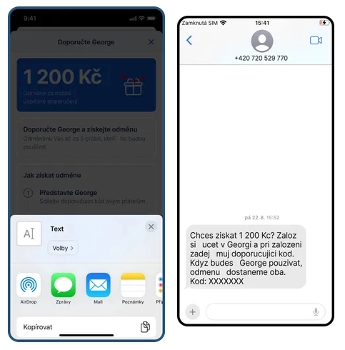 Zdroj: ČSJak na to? V Profilu klikněte na Doporučte George. Na další obrazovce klikněte dole na Sdílet kód.