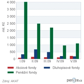 Za prvních pět měsíců letošního roku odteklo z fondů evidovaných ve statistikách AKAT ČR 16,8 miliardy korun, přičemž na peněžní trh připadala více jak polovina těchto odkupů, konkrétně 10,7 miliardy korun. Když k číslům připočítáme také hodnoty z loňského roku, zjistíme, že se manažeři podílových fondů museli smířit se zpětným odkupem podílových listů od svých klientů v úhrnné výši přes 81 miliard korun, z nichž více jak 50 miliard připadá na fondy peněžního trhu.