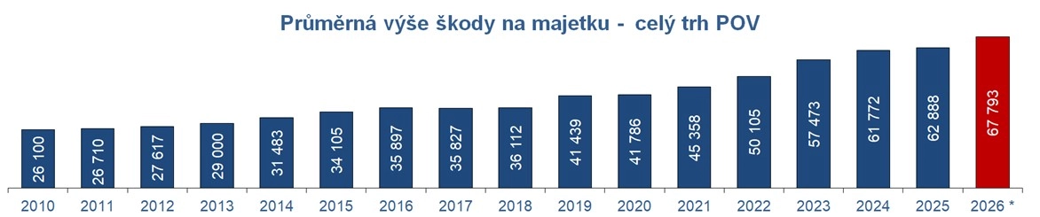 „Očekáváme, že průměrná majetková škoda z povinného ručení dosáhne za rok 2026 částky téměř 68 tisíc korun, což představuje její zdvojnásobení za dobu posledních 12 let,“ řekl dnes médiím Petr Jedlička, pojistný matematik České kanceláře pojistitelů.