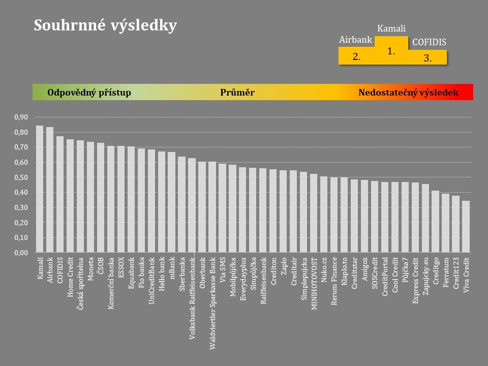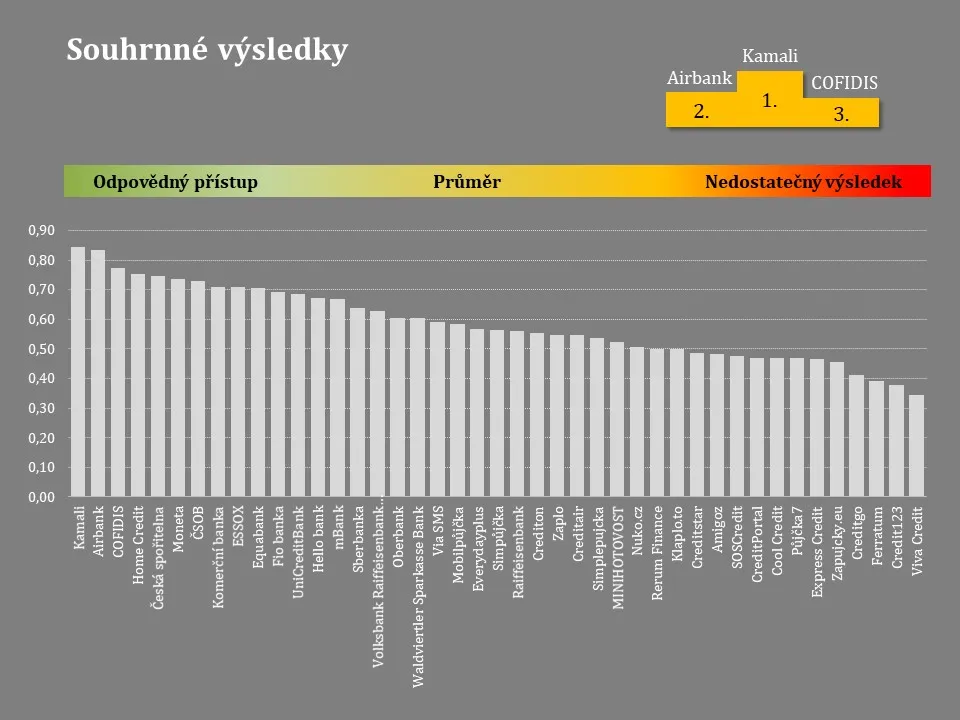 „Vítězem srovnání se stal opět Kamali, který jen s nepatrným odstupem předstihl druhou Air Bank. Třetí pozici obhájil Cofidis. Solidní umístění si drží i největší tuzemské banky, stejně jako významní nebankovní hráči Home Credit a Essox.“ hodnotí výsledky David Borges.