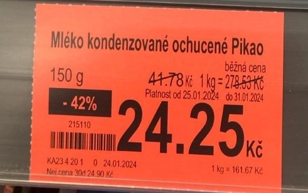 Albert lákal na „slevu“ ve výši 44 procent, když vedle aktuální ceny kávy 399 korun uváděl přeškrtnutou cenu 719 korun. Ve skutečnosti přitom kávu zdražil o šest procent – nejnižší cena, za kterou ji prodával za posledních třicet dnů, totiž byla 379 korun. Takový postup může uvést spotřebitele v omyl a porušuje zákon, potvrdil Nejvyšší správní soud.