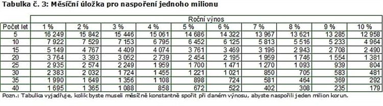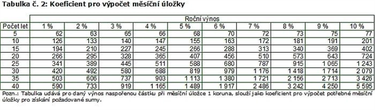Pro usnadnění nabízím tabulku koeficientů, kterými stačí podělit požadovanou sumu, a dostanete potřebnou měsíční úložku: