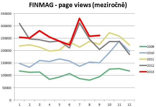 Tolik přehled všech zásadních novinek v kostce. S přechodem na nový administrační systém jsme se také rozhodli přesunout finmag.cz ze samostatné domény na finmag.penize.cz. To je ale spíše kosmetický detail, související především se zvýšením inzertního potenciálu Finmagu, který má sice výborný socio-demografický profil a počet návštěvníků setrvale roste, jak je patrné z grafu níže, pořád je příliš malý na to, aby se o něj začali zajímat velcí inzerenti. Věříme, že propojení s největším českým portálem o osobních financích, posune Finmag do středu jejich mediálních rozpočtů. Změn pak doznala také sekce pro inzerenty.