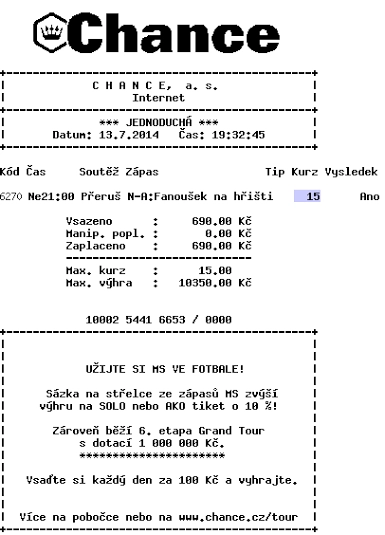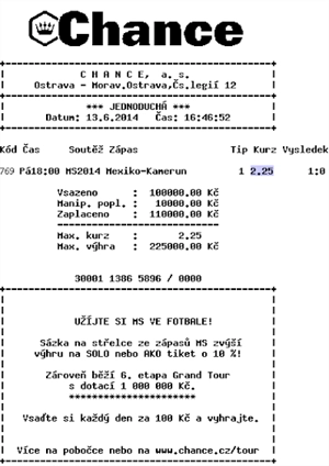 Vysoké výhry nepřinášejí jen sázky s vysokými kurzy. Někdy bohatě stačil jeden zápas, navíc vsazený na favorita. Aby ale v takovém případě stála výhra za to, musí být hodně vysoký vklad. O to větší nervy to pak pro sázkaře jsou, protože riziko, že se během devadesáti minut rozplynou desítky nebo stovky tisíc korun, není vůbec zanedbatelné. Ukázkovým příkladem sázky na „jistotu“ je tiket sázkaře, který věřil reprezentaci Mexika proti Kamerunu tak, že na ni vsadil sto tisíc. Na pobočce Chance si pak mohl vyzvednout dvě stě dvacet pět tisíc korun. Odvážný klient Tipsportu zase vsadil na vítězství Nizozemska nad Brazílií v utkání o třetí místo pět set padesát tisíc korun. Po výhře tulipánů mu na konto putovala výhra 1,7 milionu.
