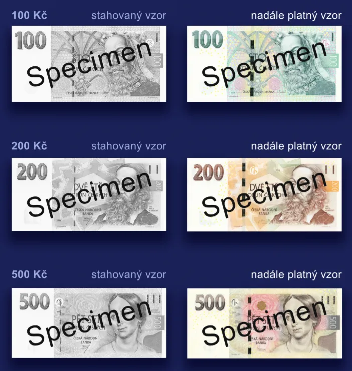 S bankovkami vydanými v letech 1995 až 1999 nepůjde už za rok platit. Česká národní banka je postupně stahuje z oběhu a oznámila, že od 1. července 2022 plánuje ukončit platnost starších vzorů bankovek nominálních hodnot 100 Kč, 200 Kč, 500 Kč, 1000 Kč a 2000 Kč z druhé poloviny 90. let. Výměna starších vzorů bankovek bude i po skončení platnosti časově neomezená.