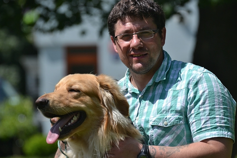 Na focení si David Vavřík přivedl svého psa Charlieho